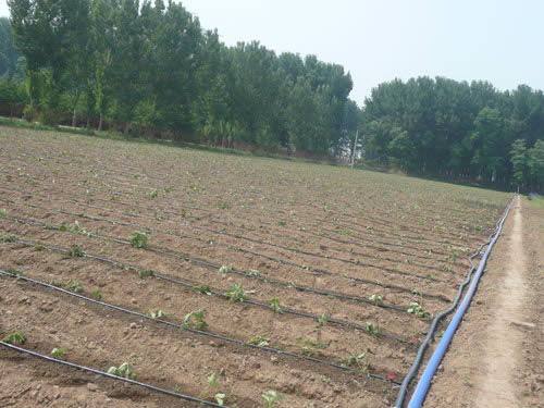 ● 內(nèi)鑲式滴灌管采用紊流流道,具有一定的補(bǔ)償作用,平地上